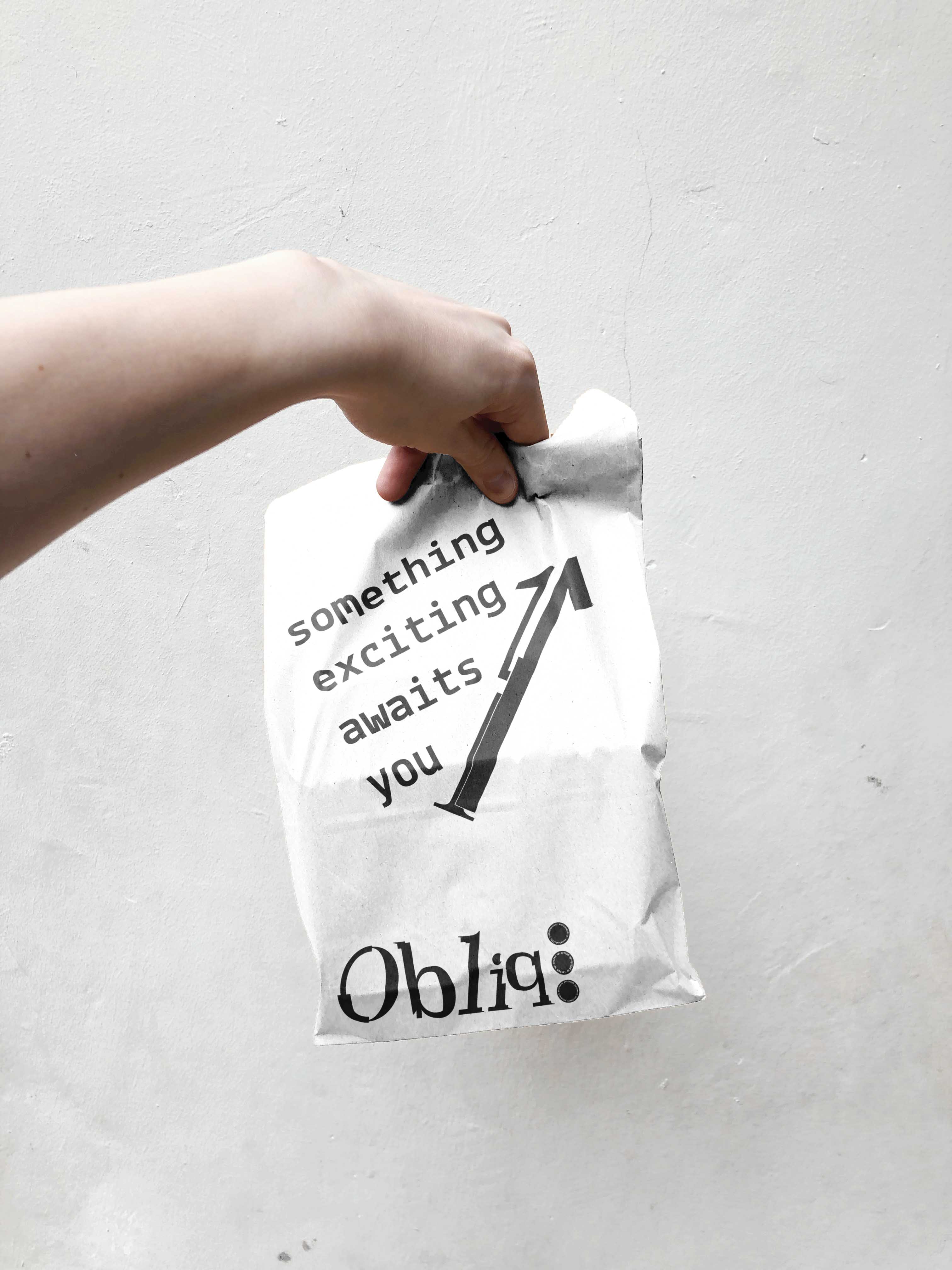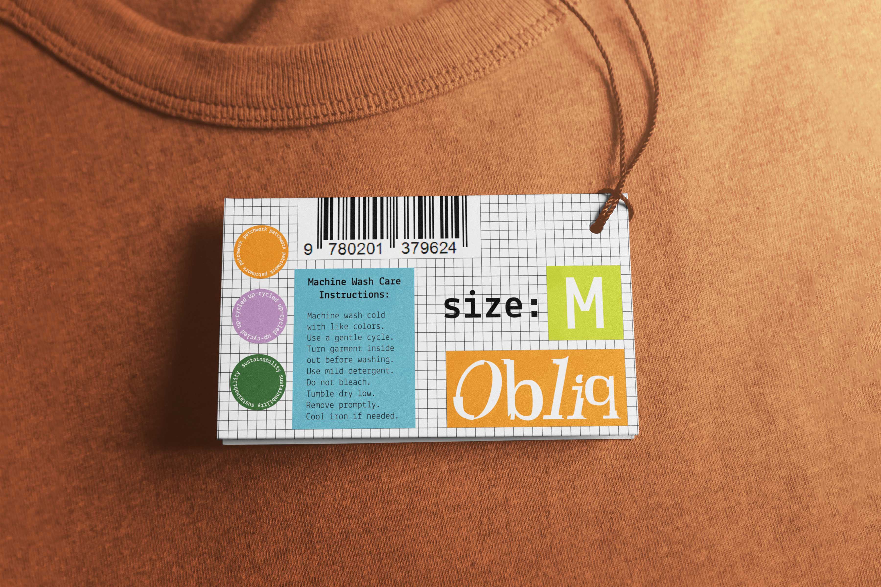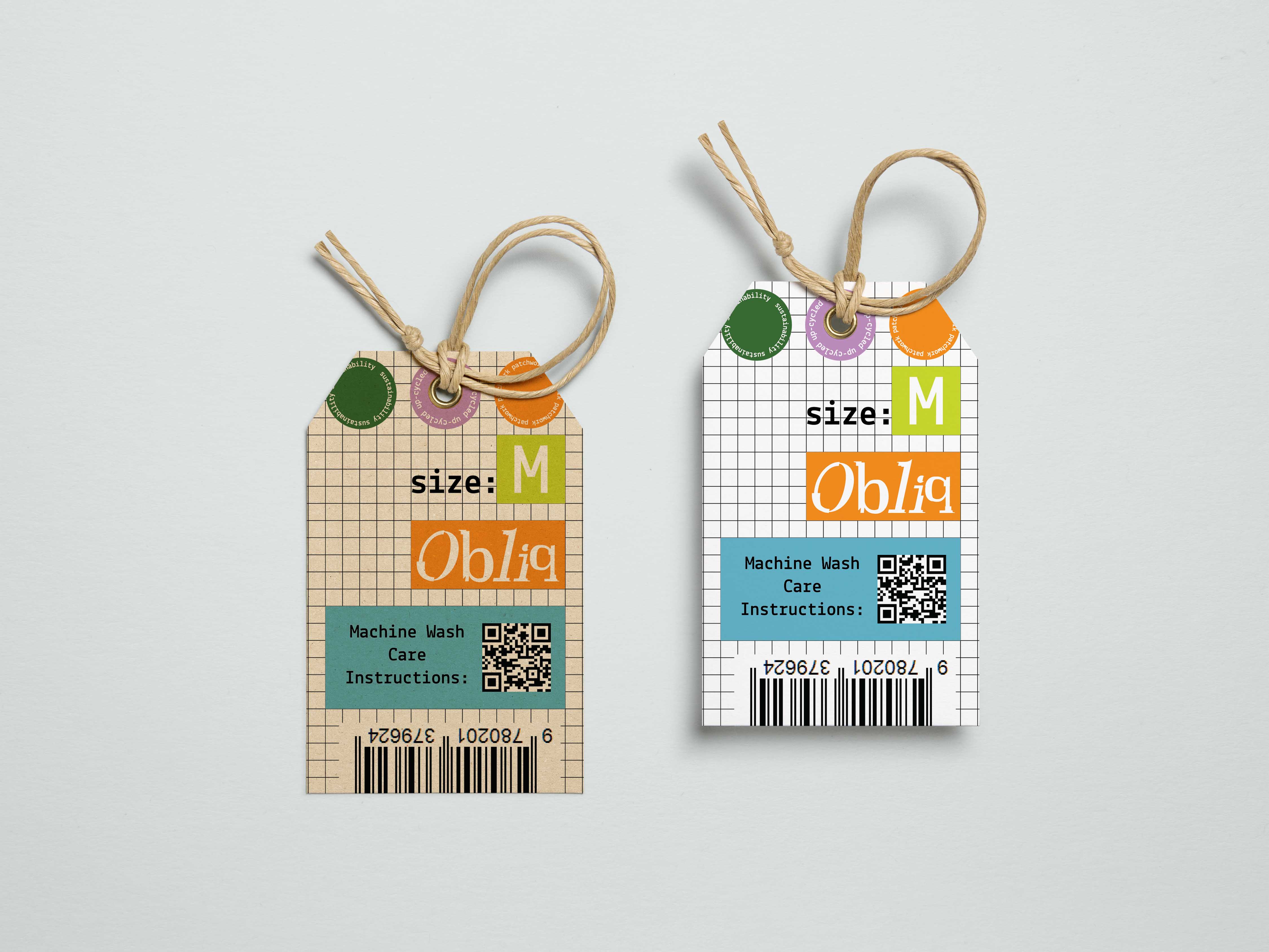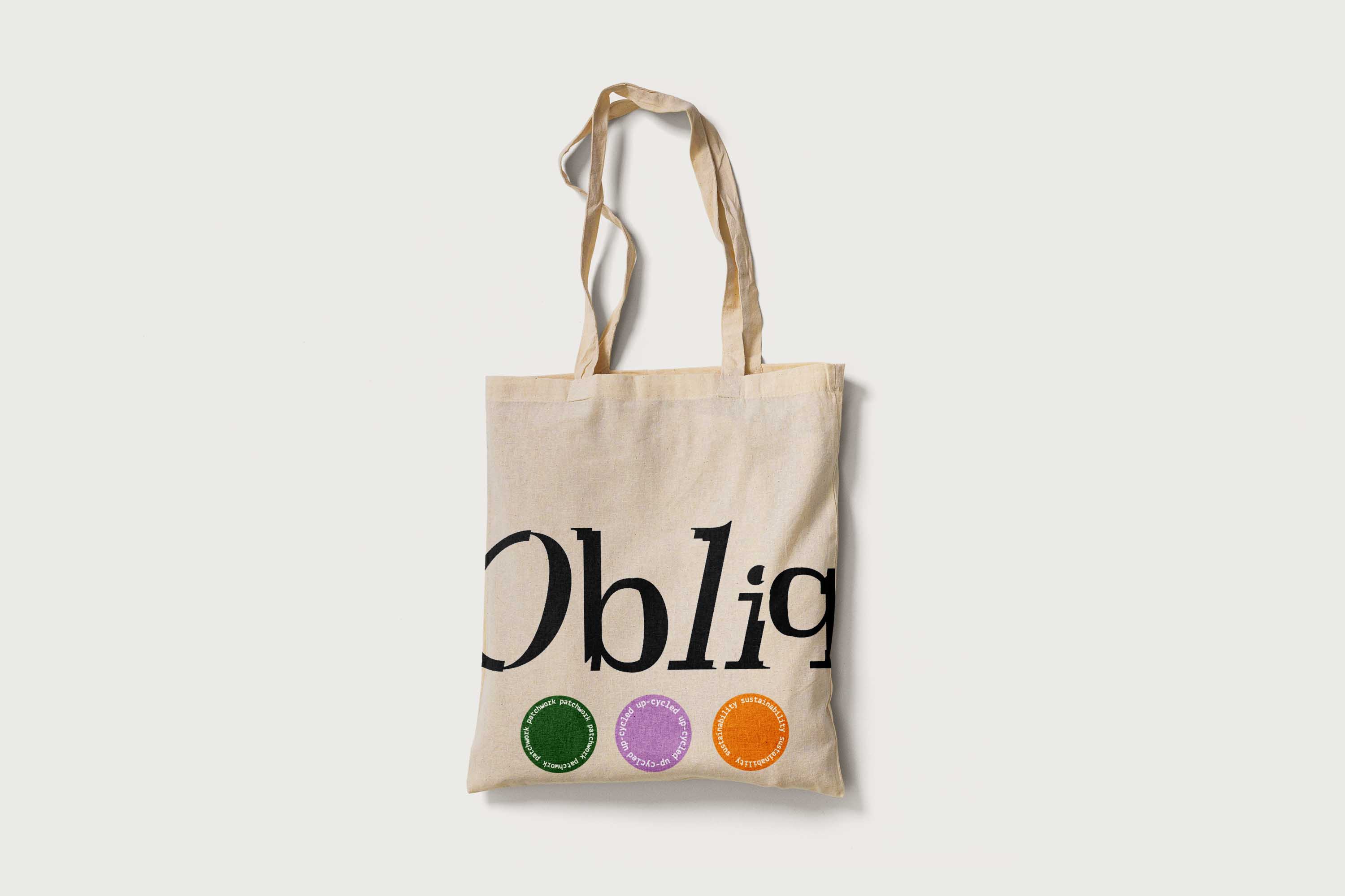 Obliq is a fictional sustainable fashion brand that sells a range of statement pieces. The clothing is either brand new or upcycled.