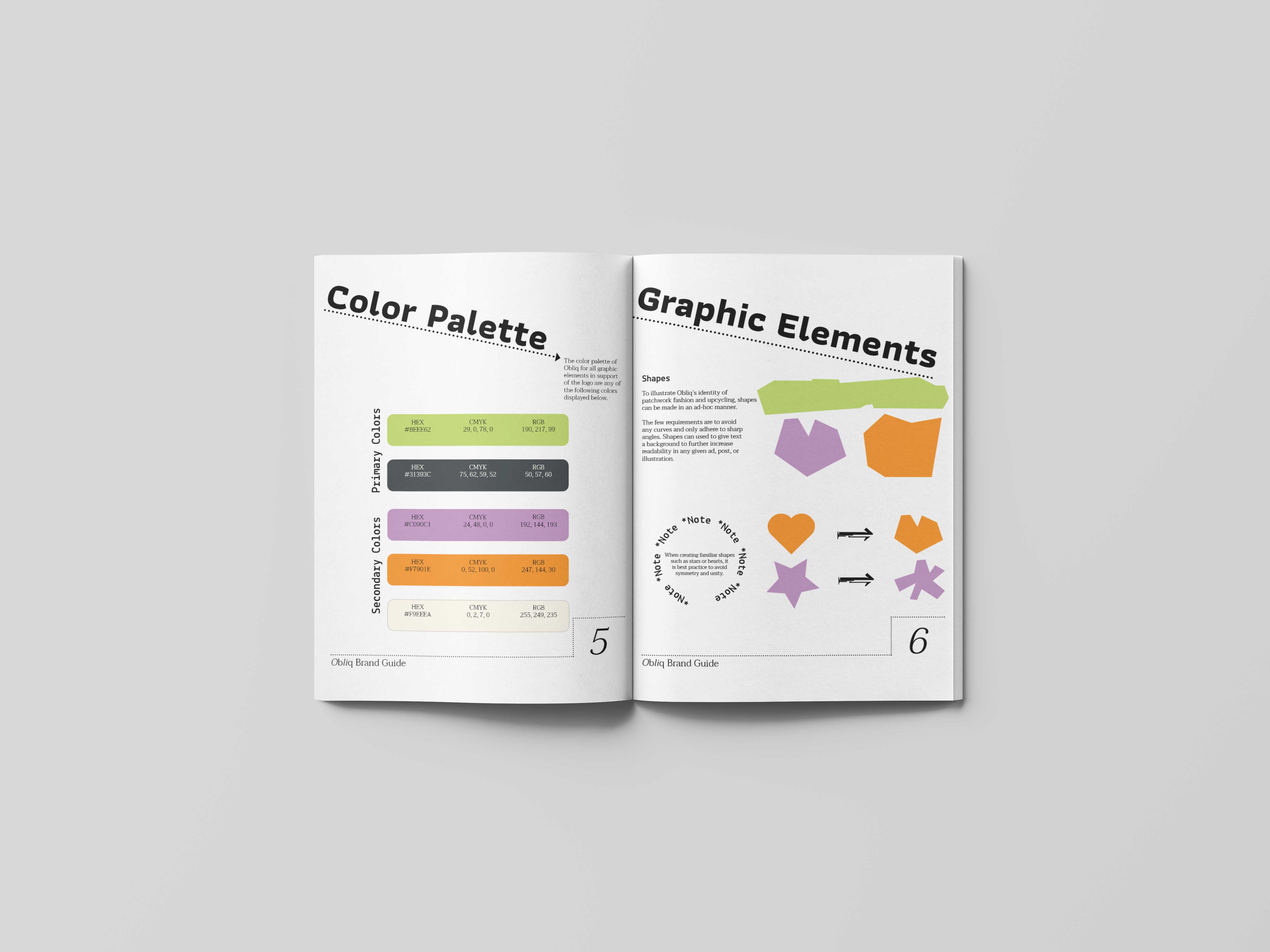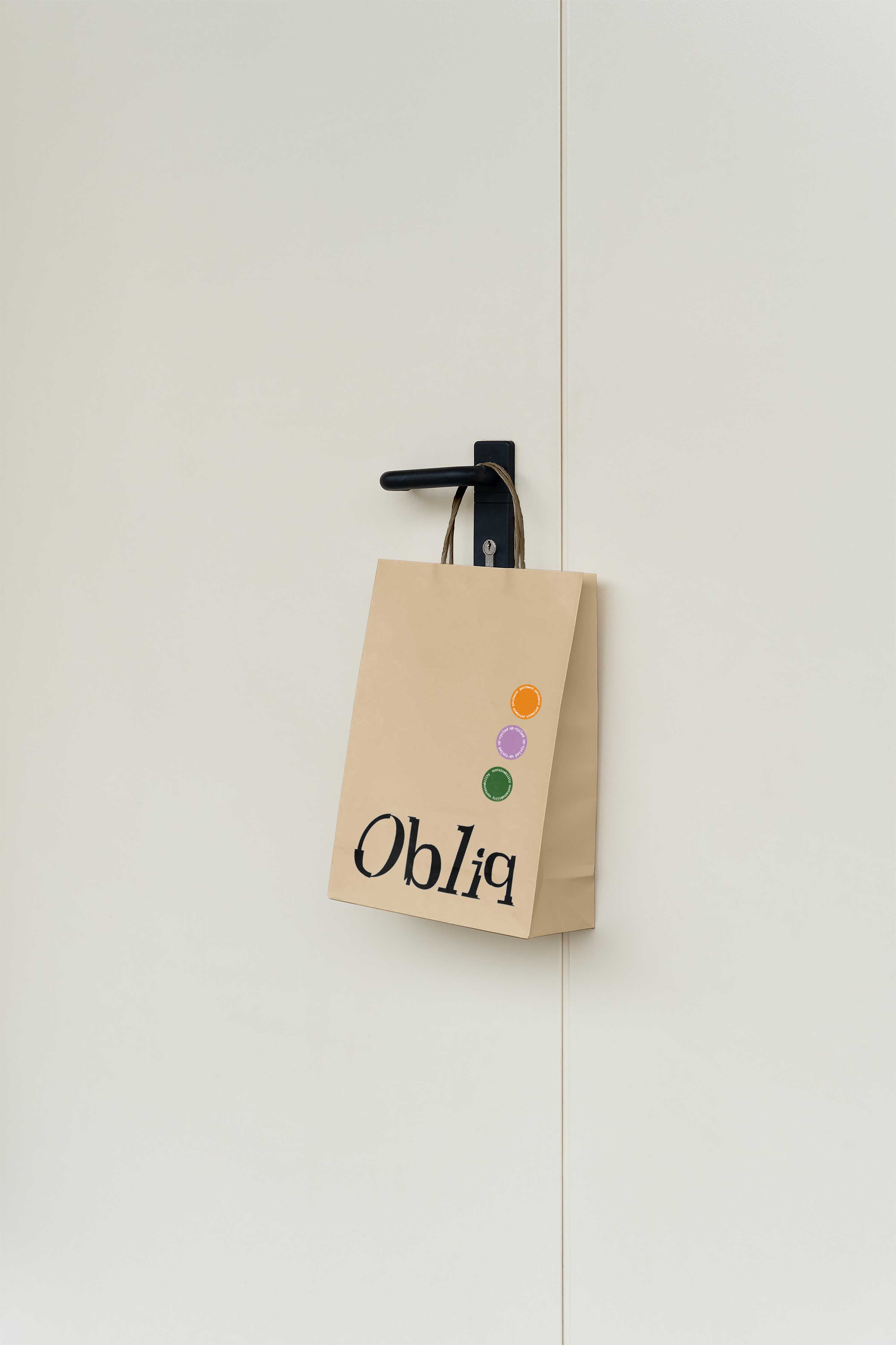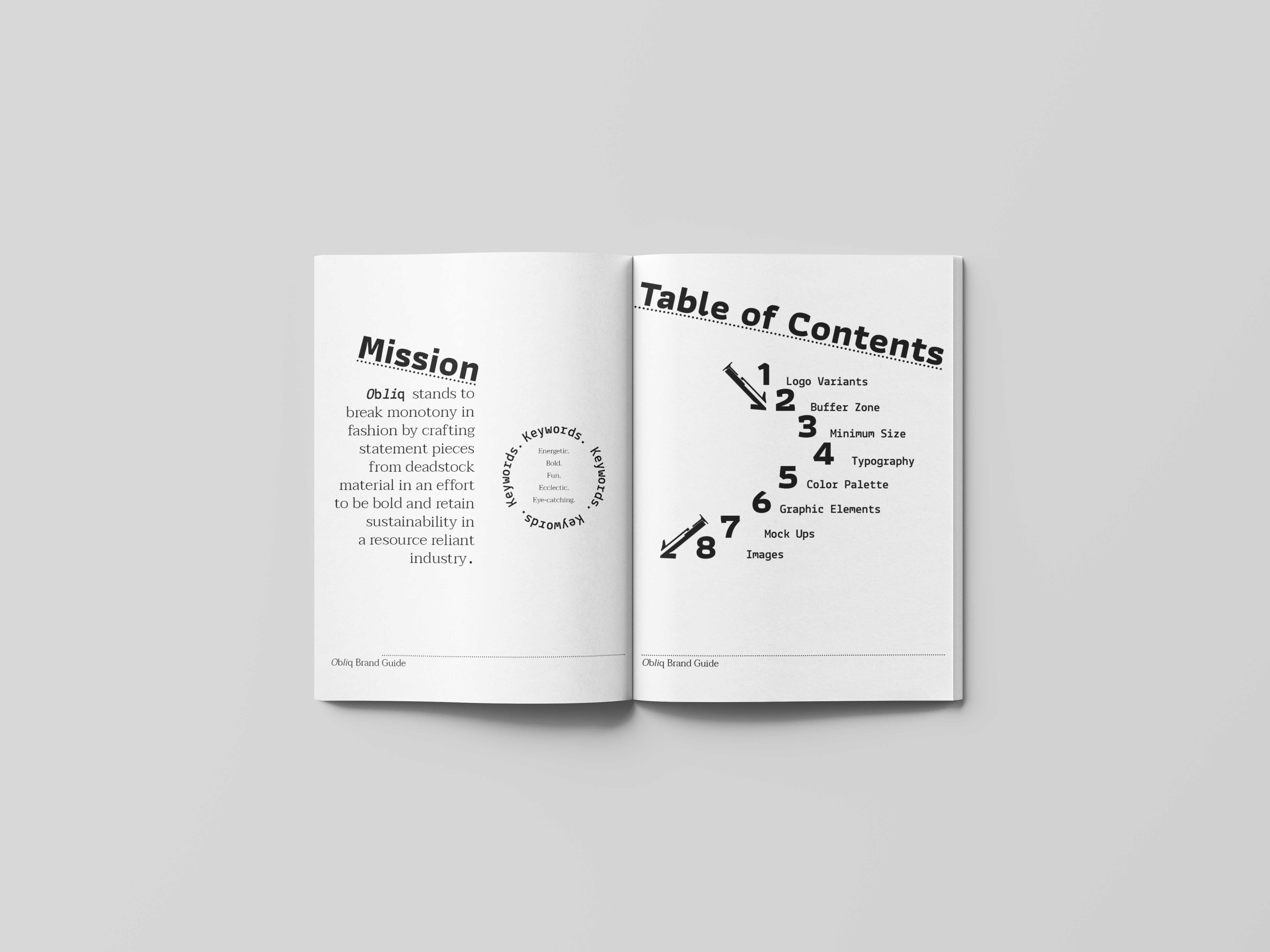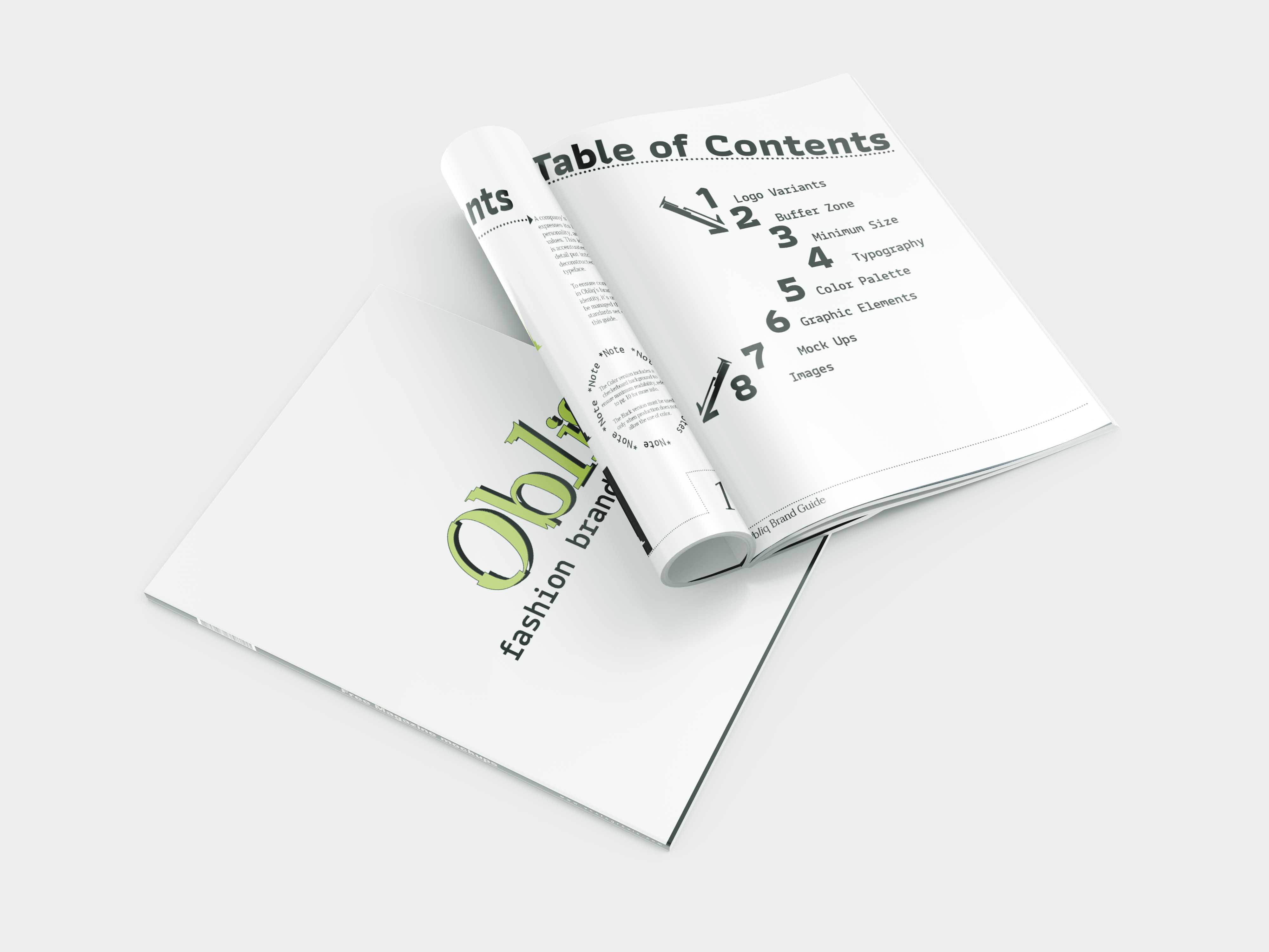 To create a brand guide for the Obliq fashion brand; the guide must include everything needed for a store such as store signage, packaging, and of course its logo