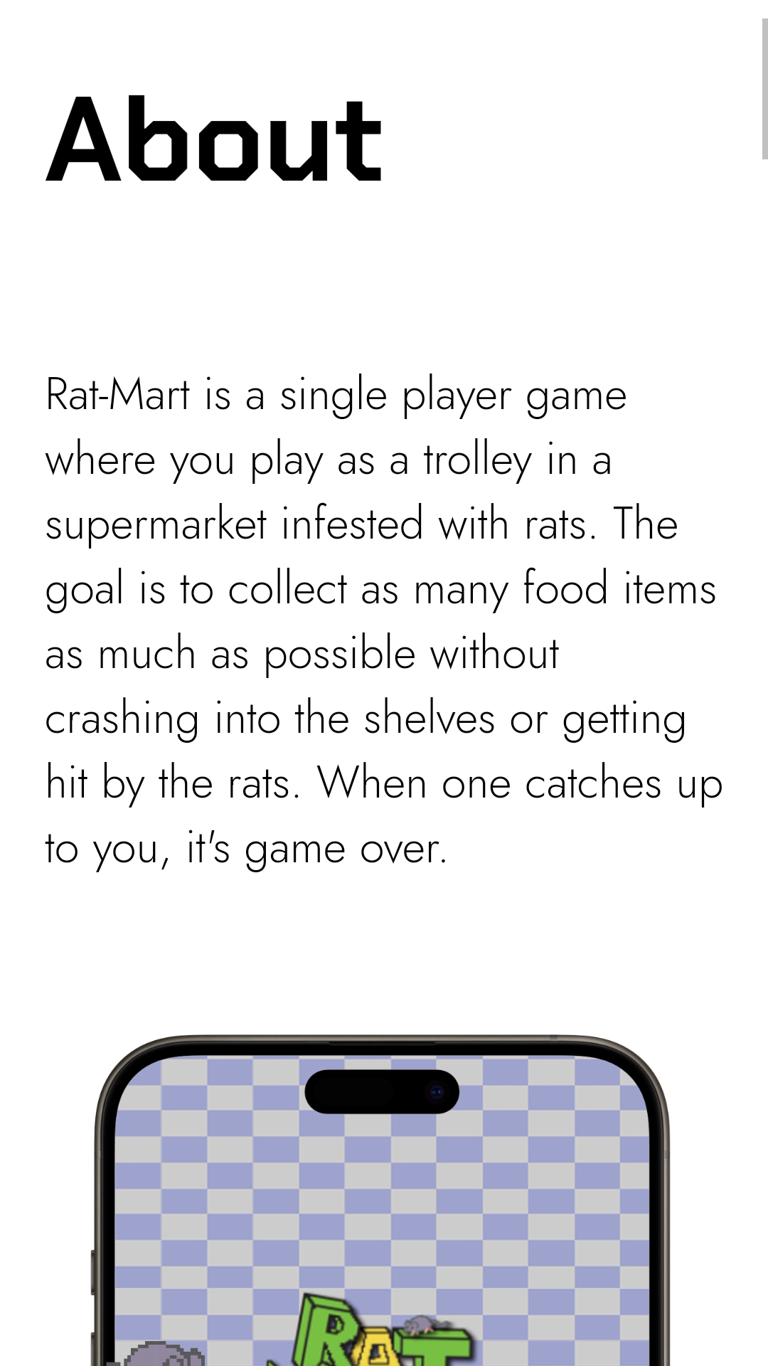 I chose to do it on a 2nd year web project that involved creating a video game which we called RatMart.