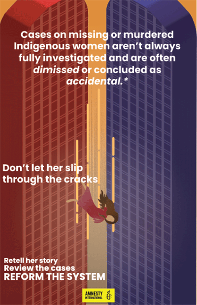 The poster draws heavy inspiration from Mad Men's promotional poster that got a lot of flack due to it's slight reminder to the events of 9/11. I wanted to posit that authorities like the Police and RCMP represent literal and metaphorical institutions that fail to serve and protect vulnerable people, like Indeginous women.