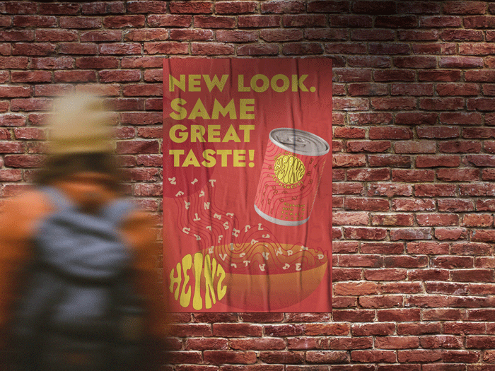 For the face of the logo, the pouring motif is repeated behind the logo. This was done using distorted lines to represent the ripples of sauce being poured. This is unrealistic, but it would be cool if it was actually printed that the lines are metallic to catch the attention of kids.