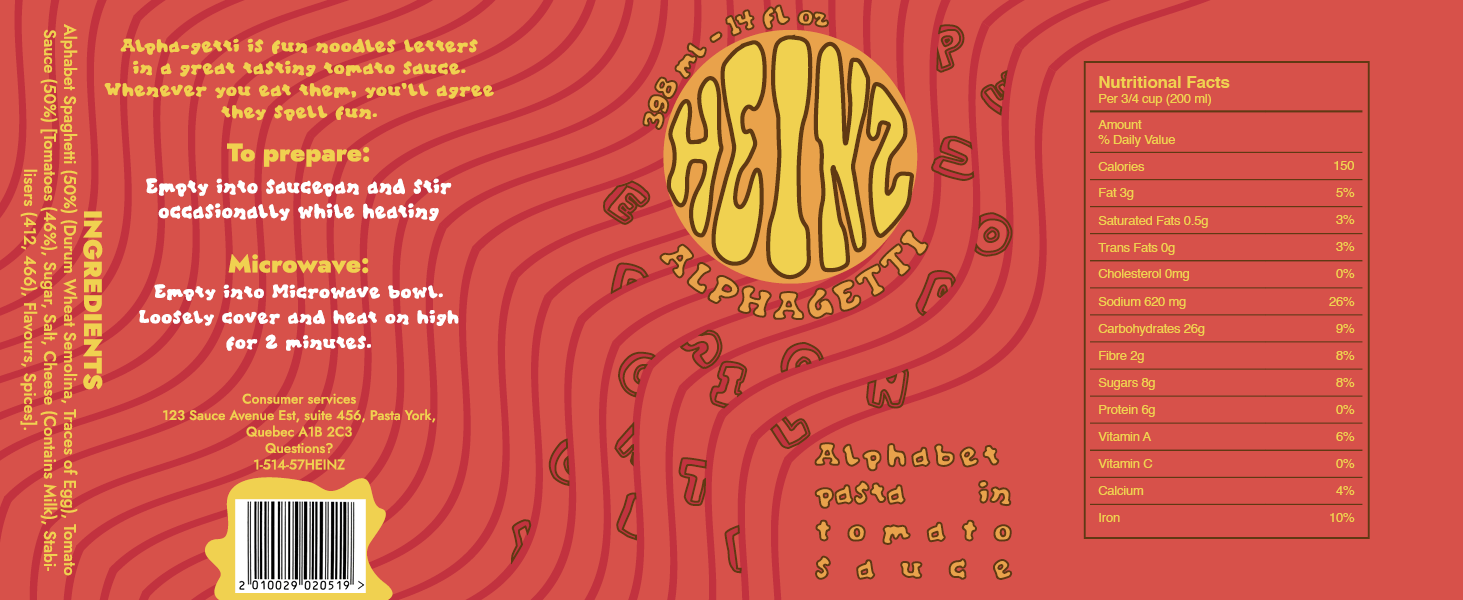 The idea behind this project was to rebrand the Alphagetti. The direction I decided to take was a minimalist/ modernist approach. I had recently gotten into Star Trek and I wanted to poison it with the question of "What would advertising and consumerism look like in their world?", while the finished product is in no way futuristic, I wanted to see how I could apply minimalism to a product that is whimsical and fun.